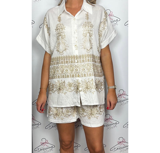 Gold Embroidered Co-Ord in White
