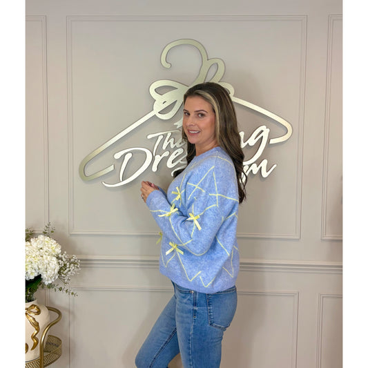 Long Sleeve Ribbon Jumper in Blue