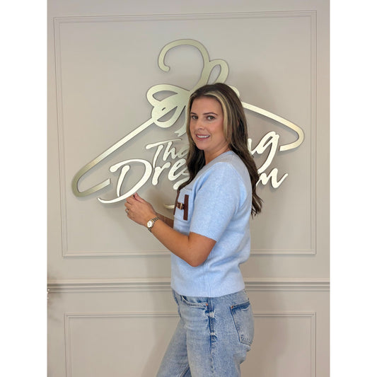 Pocket Detail Short Sleeve Jumper in Blue